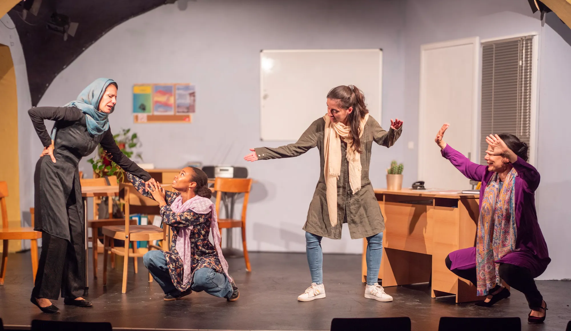 A full theatre campaign package: photoshoot, poster + PR assets, rehearsal/press portraits, and interview videos for social media.